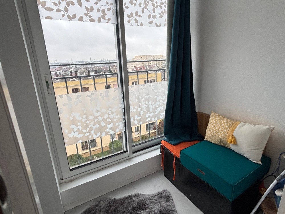 A VENDRE CHENOVE (5mn DIJON Sud - Tram - Divia - quartier très calme) au 6eme étage avec asc, lumineux appartement de type 2 de 43,26 m2 (belle vue), entrée parquet, séjour parquet (balconnet avec vue plongeante), cuisine meublée indépendante, chambre (parquet) salle de douche avec wc et espace buanderie, cave, parking collectif