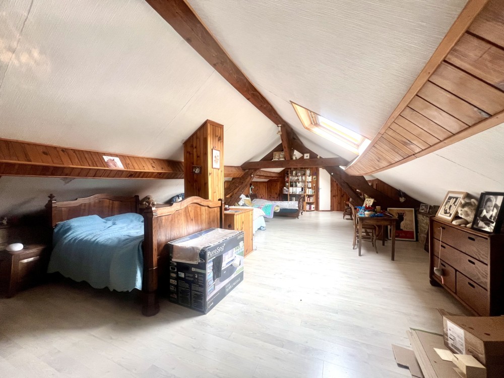 A l'étage, une chambre avec salle de douches et WC, spacieux grenier aménageable.