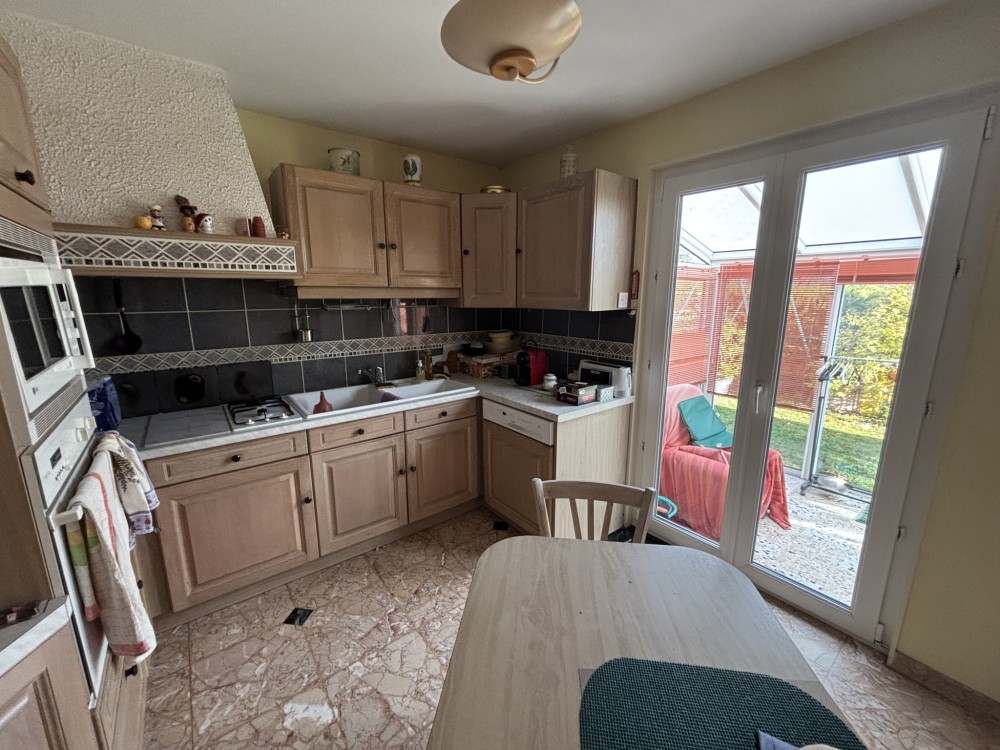 A VENDRE SAINT APOLLINAIRE (5 mn DIJON EST - Bus divia et tram à proximité) au grand calme en fond d'une impasse proximité parc, agréable maison de type 6 sur sous sol avec garage sur joli jardin clos de 741m2. Entrée carrelée desservant pièce de vie de 35 m2 (cheminée - accès à véranda et jardin par portes fenêtres) cuisine équipée semi ouverte, 4 chambres dont une en rez de chaussée, vaste salle de bain, 2 toilettes, grenier, en sous sol : Atelier, buanderie, cave, salle de jeux, garage de plain pied