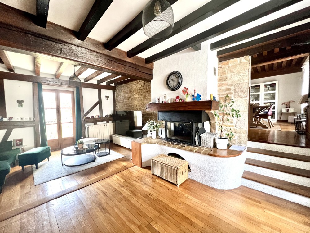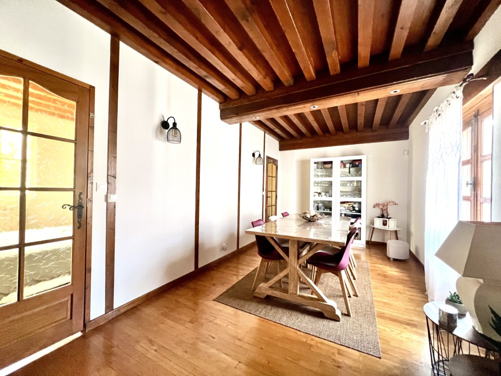 A vendre dans le village de Corpeau, jolie maison ancienne d'environ 140m2. Beau salon gardant le charme de l'ancien (cheminée, poutres, parquet), salle à manger, cuisine carrelée équipée, 2 chambres, salle de bains et wc séparé.À l'étage, deux autres chambres, un grand bureau (possibilité de créer une troisième chambre), une salle d'eau et une spacieuse pièce de rangement avec buanderie complètent l'espace nuit. Le sous-sol dispose d'un grand garage, d'un atelier et d'une cave avec un accès direct à une cour privative orientée sud. Un ascenseur relie le sous-sol à la maison.