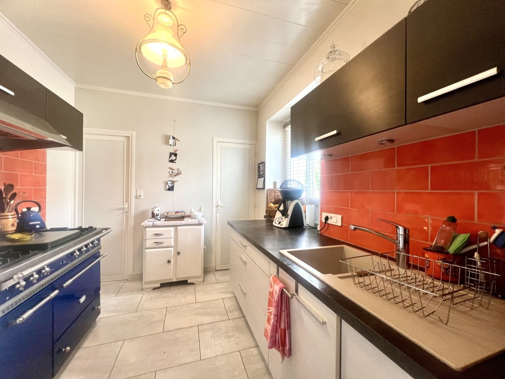 Un gîte de 105m2 attenant à la partie habitation avec salon, cuisine ouverte équipée, 2 chambres avec chacune salle de douches et WC.