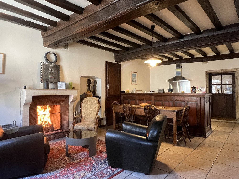 A VENDRE à PLOMBIERES-LES-DIJON 5 min Dijon Ouest, bus Divia. Bel ensemble immobilier fin XVIIIe, situé dans le coeur du village, proche de toutes commoditiés. Belle maison principale de 195m2, 5 chambres. Au RDC : Entrée, vaste pièce à vivre avec cheminée ouverte sur une cuisine équipée, office et cellier. Au 1er étage 2 chambres, salle de douche, salon traversant (plafond à la française, pierre apparente, bibliothèque). Au 2e étage : 3 chambres, bureau, lingerie et salle de douche avec WC. Maison annexe de 120m2 actuellement affectée à un usage professionnel. Au RDC grange et four à pain en parfait état de marche. 1er étage : séjour-cuisine, 2 bureaux, chambre, salle-de-douche, WC.Grenier. Très beau potentiel. IDEAL ARTISAN OU PROFESSION LIBERALE Beaucoup de cachet. Parking pour 2 voitures sous un porche, 2 caves. Cour en dalles de Bourgogne.