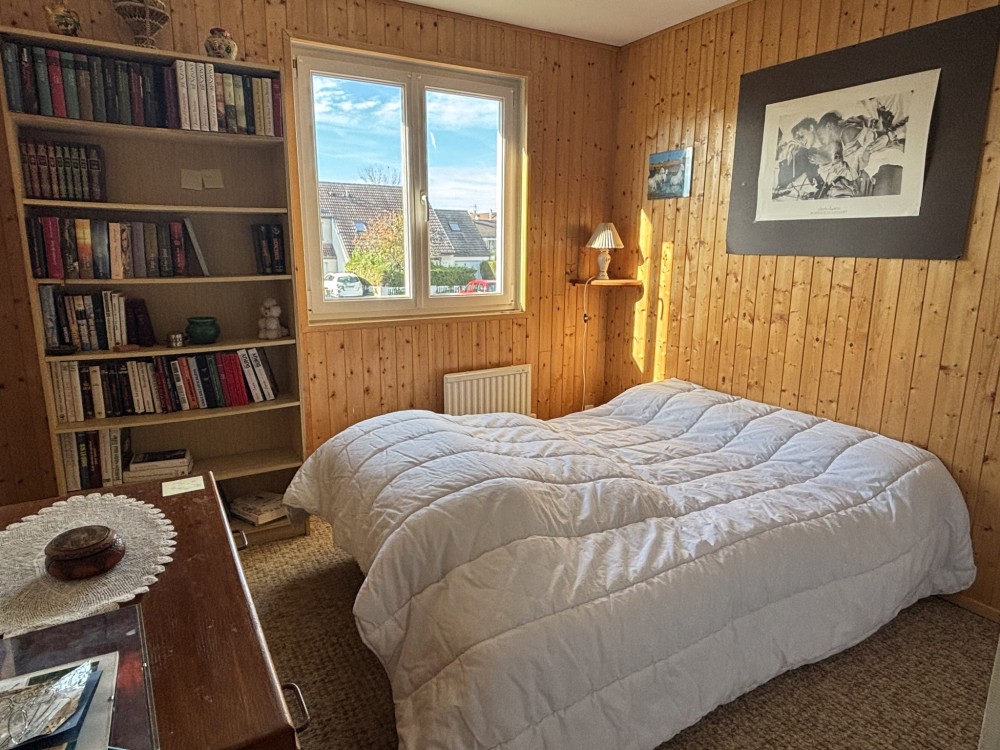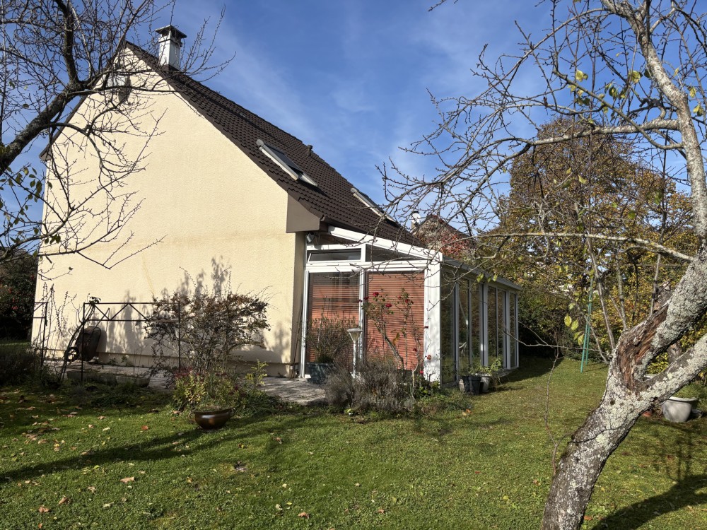 A VENDRE SAINT APOLLINAIRE (5 mn DIJON EST - Bus divia et tram à proximité) au grand calme en fond d'une impasse proximité parc, agréable maison de type 6 sur sous sol avec garage sur joli jardin clos de 741m2. Entrée carrelée desservant pièce de vie de 35 m2 (cheminée - accès à véranda et jardin par portes fenêtres) cuisine équipée semi ouverte, 4 chambres dont une en rez de chaussée, vaste salle de bain, 2 toilettes, grenier, en sous sol : Atelier, buanderie, cave, salle de jeux, garage de plain pied
