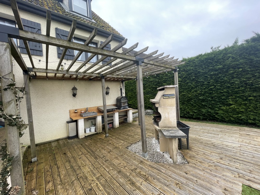 A l'extérieur vous profiterez d'une jolie terrasse couverte avec cuisine d'été, d'un bassin avec poissons, et d'une piscine hors sol, le tout dans un cadre agréable et sans vis-à-vis.