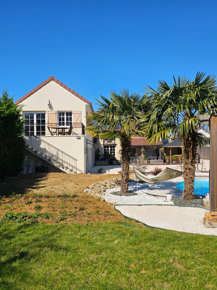 A VENDRE à ETEVAUX (25 mn Dijon Est) belle propriété sur 1700m2 de terrain clos et arboré comprenant : Une belle maison dans ancienne grange réhabititée du XIXe siècle (murs de 90 cms épaisseur pierre) superbe pièce de vie de 80 m2 (pierres - poutres - cheminée - poêle à granules) avec cuisine équipée ouverte, 4 chambres dont un espace parental en rez de chaussée avec salle de douche privative, autre salle de douche en étage, mezzanine, 2 wc, buanderie, jolie terrasse donnant sur piscine et spa. Un appartement de 42m2 entièrement rénové comprenant jolie pièce de vie ouvrant sur terrasse avec cuisine équipée, chambre (parquet) superbe salle de bains avec baignoire balnéo et douche, wc (possible Gite). 3 garages - panneaux solaires - PAC, jolies prestations.