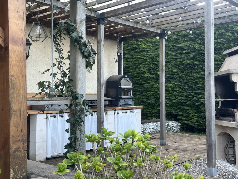 A l'extérieur vous profiterez d'une jolie terrasse couverte avec cuisine d'été, d'un bassin avec poissons, et d'une piscine hors sol, le tout dans un cadre agréable et sans vis-à-vis.