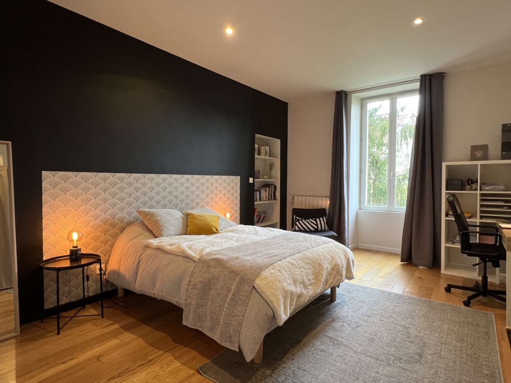UNE MAISON PRINCIPALE de 300m2 - hall d'entrée avec rangements, vaste cuisine équipée indépendante et salle à manger attenante, salon (dalles pierre de Bourgogne - cheminée bourguignonne), bureau, salon télé (pouvant être utilisé comme chambre), une salle de bains et une lingerie. Accès sur un joli jardin clos de murs de 200m2 sur l'arrière. A l'étage : 4 chambres dont une avec dressing privatif, couloir-dressing avec de nombreux placards sur-mesure, salle de douche avec WC, salle de bains, WC indépendant et grande salle de jeux. Au 2e étage, 3 greniers. Deux belles caves voutées, garage (2 voitures) et atelier. Chaudière Wiessmann condensation à gaz. Cour privative avec portail électrique. UNE MAISON ANNEXE de 80m2, comprenant au RDC : Séjour, cuisine équipée. A l'étage : 2 chambres dont une avec dressing et une salle de bains avec WC. Idéale pour une location indépendante, AirBnB ou pour une profession libérale. Réseau Divia, proche de toutes commodités.