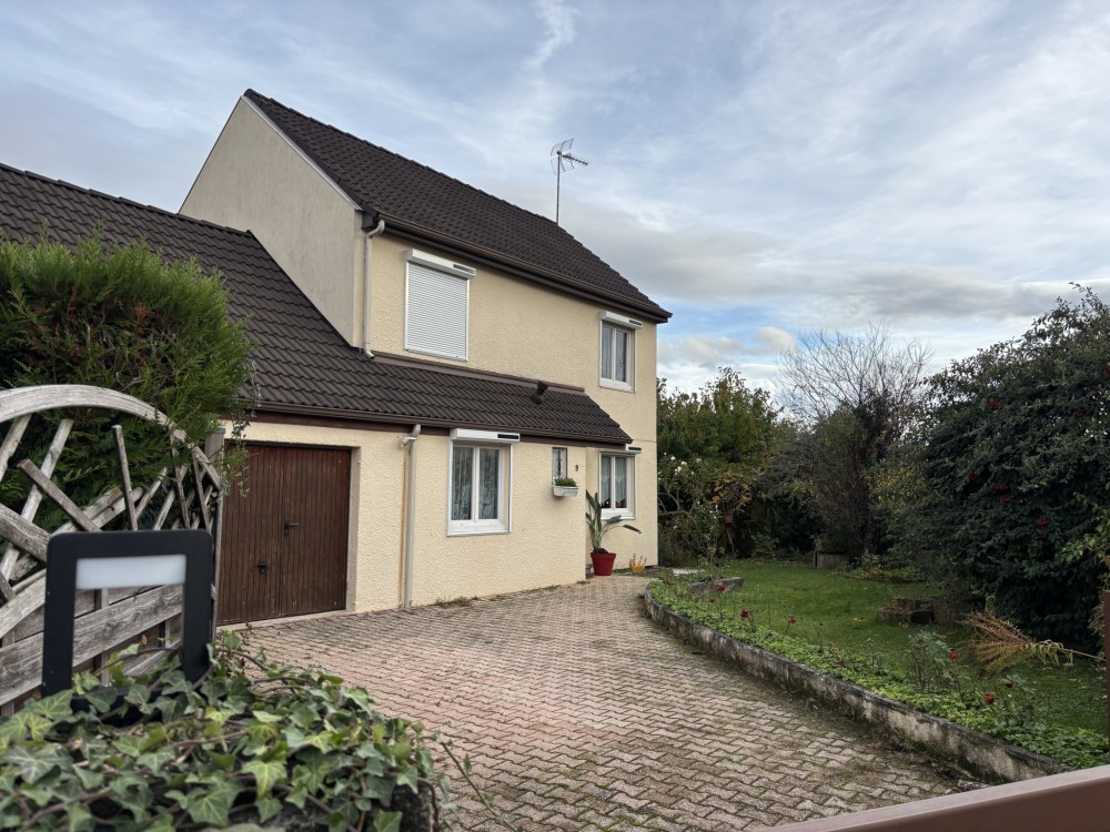 A VENDRE SAINT APOLLINAIRE (5 mn DIJON EST - Bus divia et tram à proximité) au grand calme en fond d'une impasse proximité parc, agréable maison de type 6 sur sous sol avec garage sur joli jardin clos de 741m2. Entrée carrelée desservant pièce de vie de 35 m2 (cheminée - accès à véranda et jardin par portes fenêtres) cuisine équipée semi ouverte, 4 chambres dont une en rez de chaussée, vaste salle de bain, 2 toilettes, grenier, en sous sol : Atelier, buanderie, cave, salle de jeux, garage de plain pied